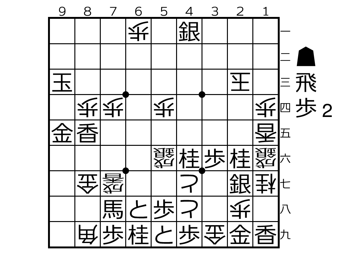 これには創作上のメリットもある。受方が中合の歩を残す変化の処理が楽になるからだ。101手目。